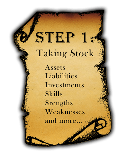 The goal for our purposes is to use the skills and knowledge we already have, add some new information, habits, perspectives and tools that will put us on the right heading. It won’t be easy, there will be setbacks and dangerous waters to navigate. You and your level of commitment and determination are what will ultimately decide whether you fail or succeed. The goal of your treasure compass is to help navigate safely through. Let’s look at where we are and what we can work with.